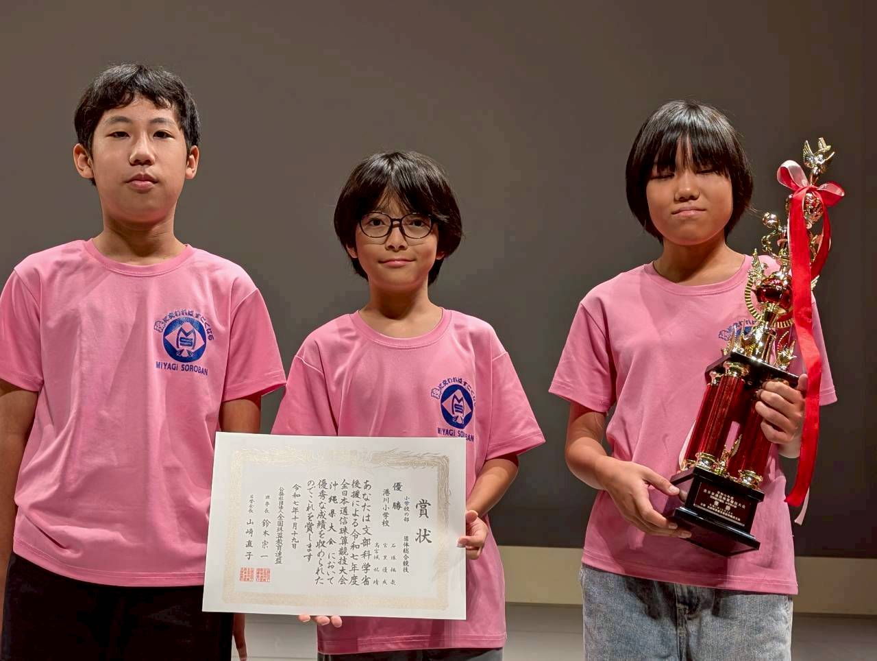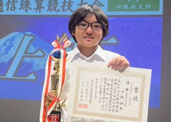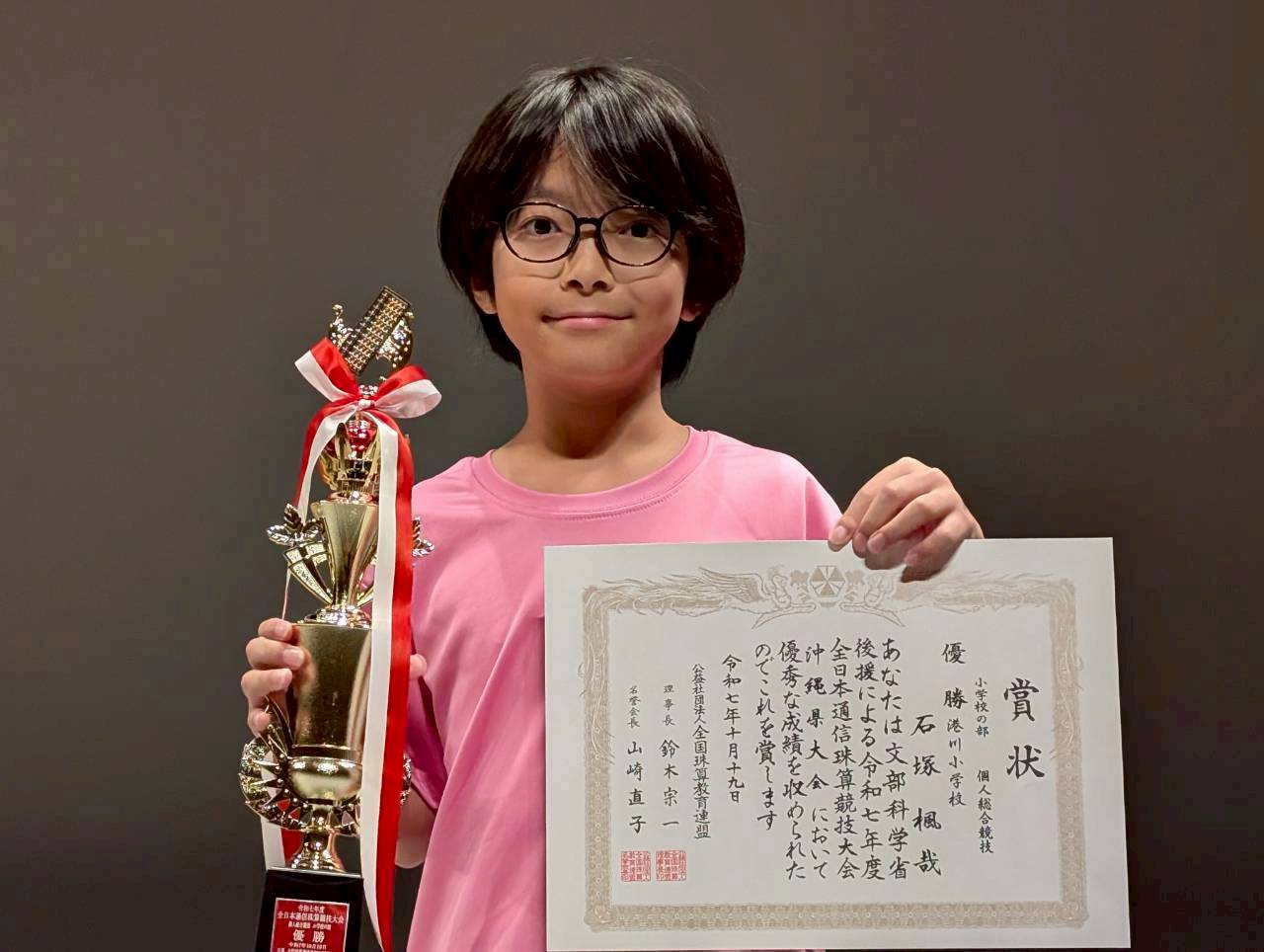 令和7年度全日本通信珠算競技大会 小学校の部 2025 10/28 お知らせ 競技大会 2025年10月28日 個人総合競技優勝 石塚 楓哉(港川小学校) 団体総合競技優勝 港川小学校(左から宮里 優成、石塚 楓哉、髙宮城 妃晴) フラッシュ暗算競技優勝 石塚 楓哉(港川小学校) 読上暗算競技優勝 石塚 楓哉(港川小学校) 読上算競技優勝 下地 伽奈(東風平小学校) お知らせ 競技大会 そろばん、そろばんのチカラ、パチパチ、十段、暗算、沖縄 よかったらシェアしてね! URLをコピーしました! URLをコピーしました!
